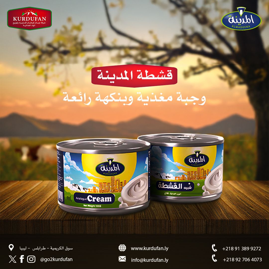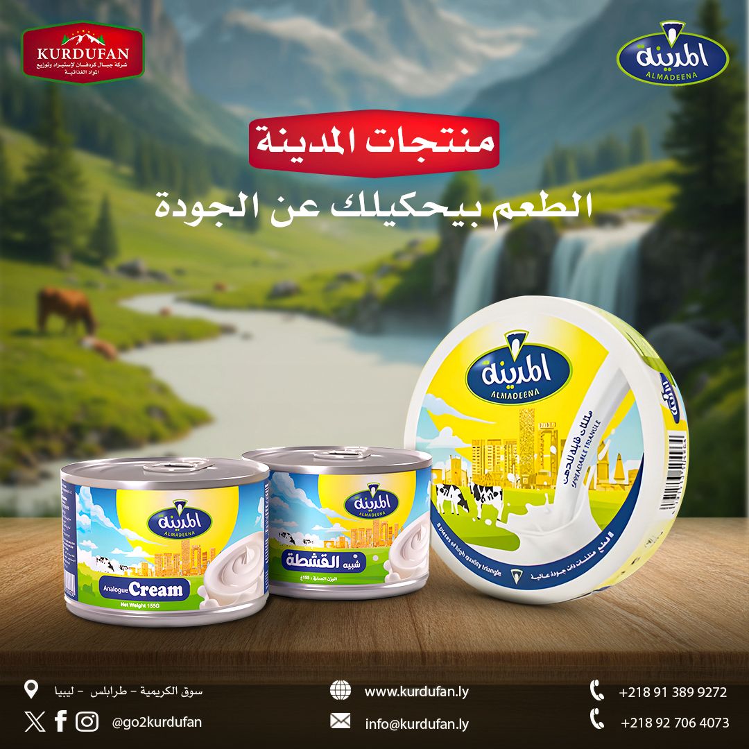 شركة جبال كردفان لاستيراد المواد الغذائية ، شركة ليبية تأسست عام 2015 وهي شركة رائدة تسويق المواد الغذائية في ليبيا ولديها موزعين بالمناطق في اكثر من 20 مدينة ليبية. تمتلك الشركة العلامة التجارية المدينة و تلتزم بتقديم منتجات غذائية عالية الجودة وامكانيات تفوق التوقعات ، مع ضمان أعلى المعايير والطعم الرائع . اكتشفوا تشكيلتنا الواسعة من المنتجات ونقدم لكم المعرفة بالمزيد عن كيفية مساهمتنا في دعم الاقتصاد الوطني وتعزيز الكفاءات المحلية